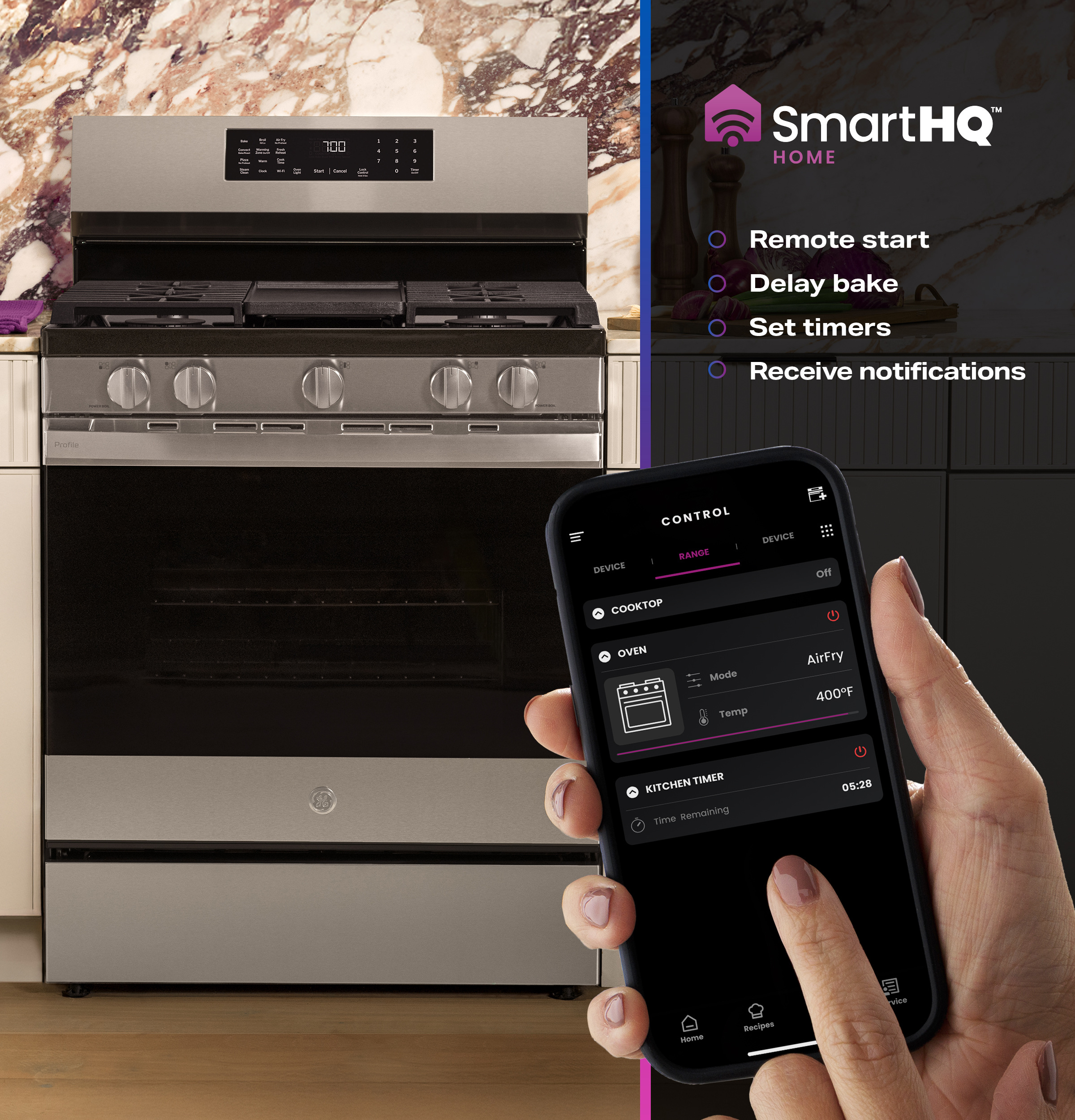 - Connect, control and manage your oven from anywhere with your smartphone or tablet (select features require WiFi connection).