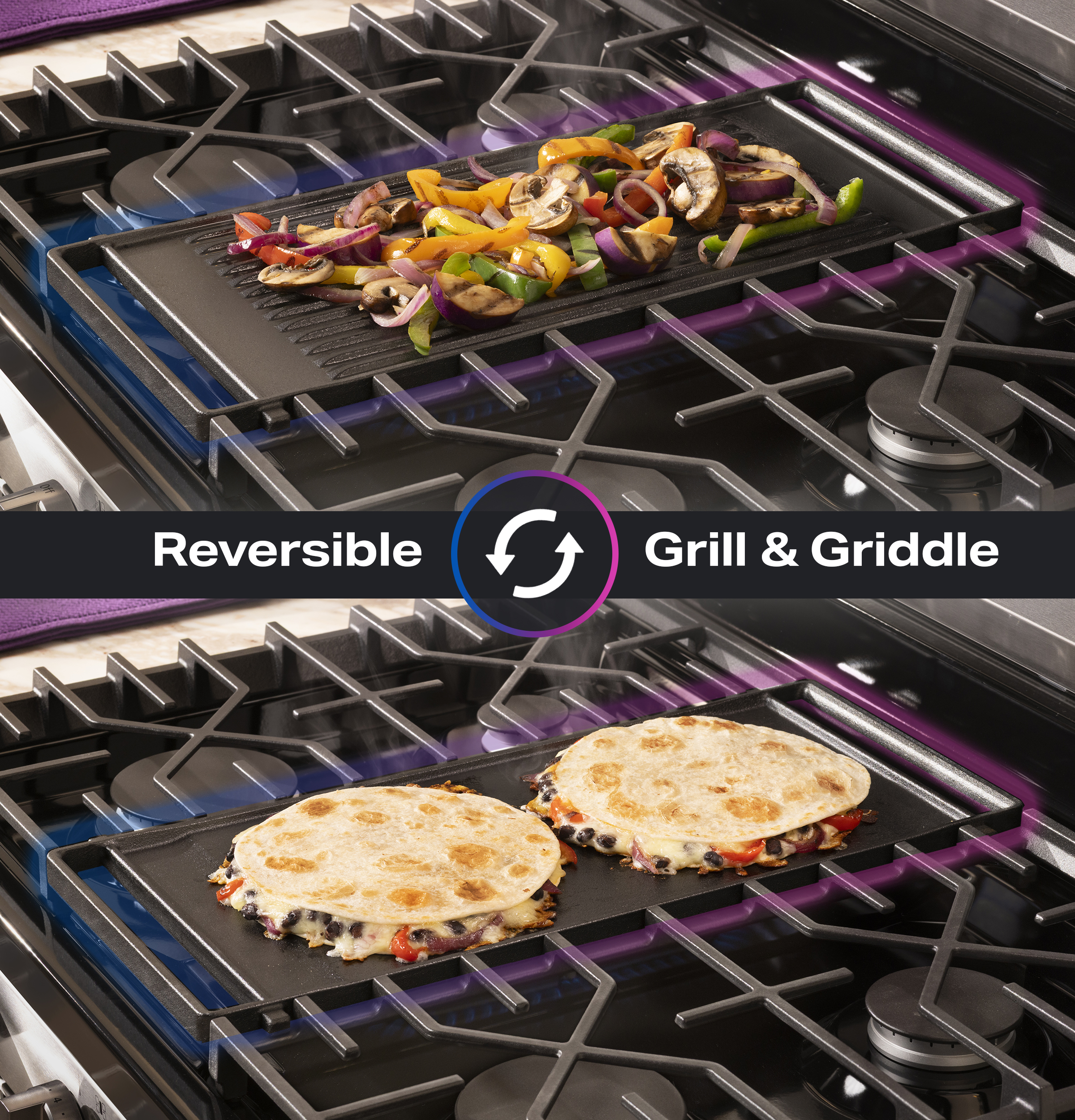 - This extra-large, reversible grill and griddle combination lets you enjoy the best in cooking versatility.