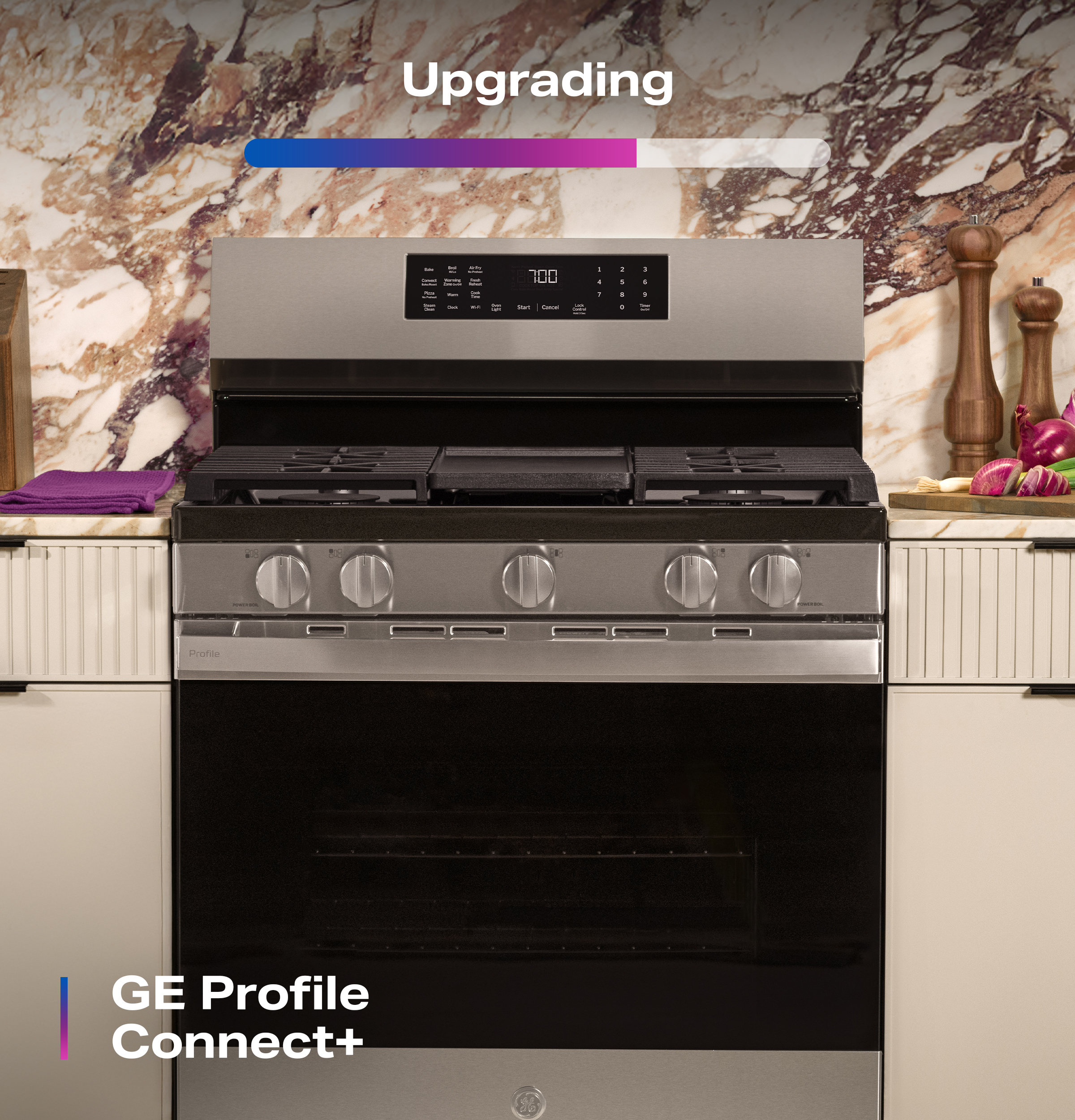 - Keep your oven up to date with GE Profile Connect+. Download software upgrades to ensure you always have the latest features, like new Air Fry modes, giving you access to continuous improvements and enhanced cooking experiences.