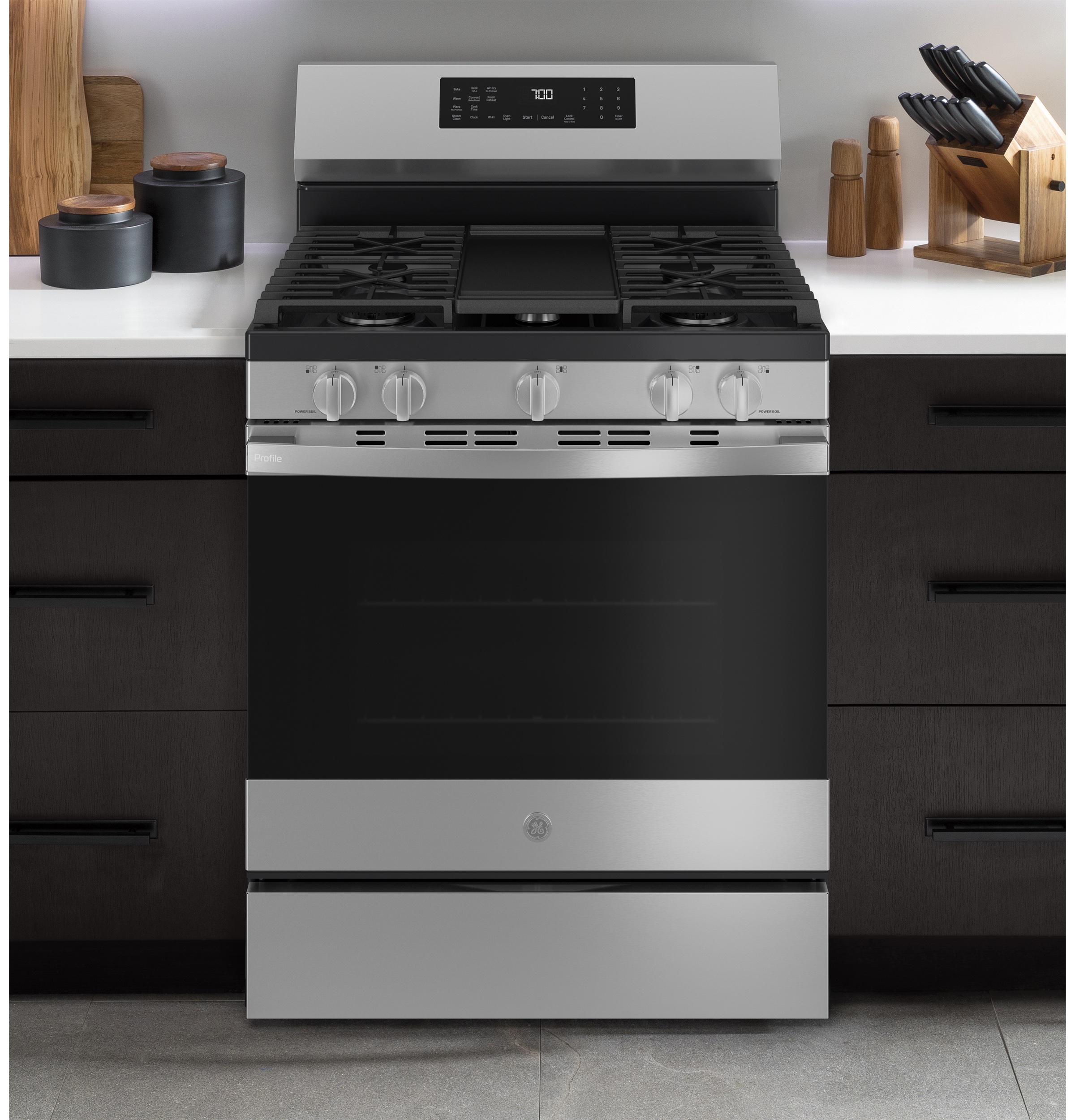 GE Profile™ 30” Smart Free-Standing Gas Convection Range with No Preheat Air Fry and EasyWash™ Oven Tray