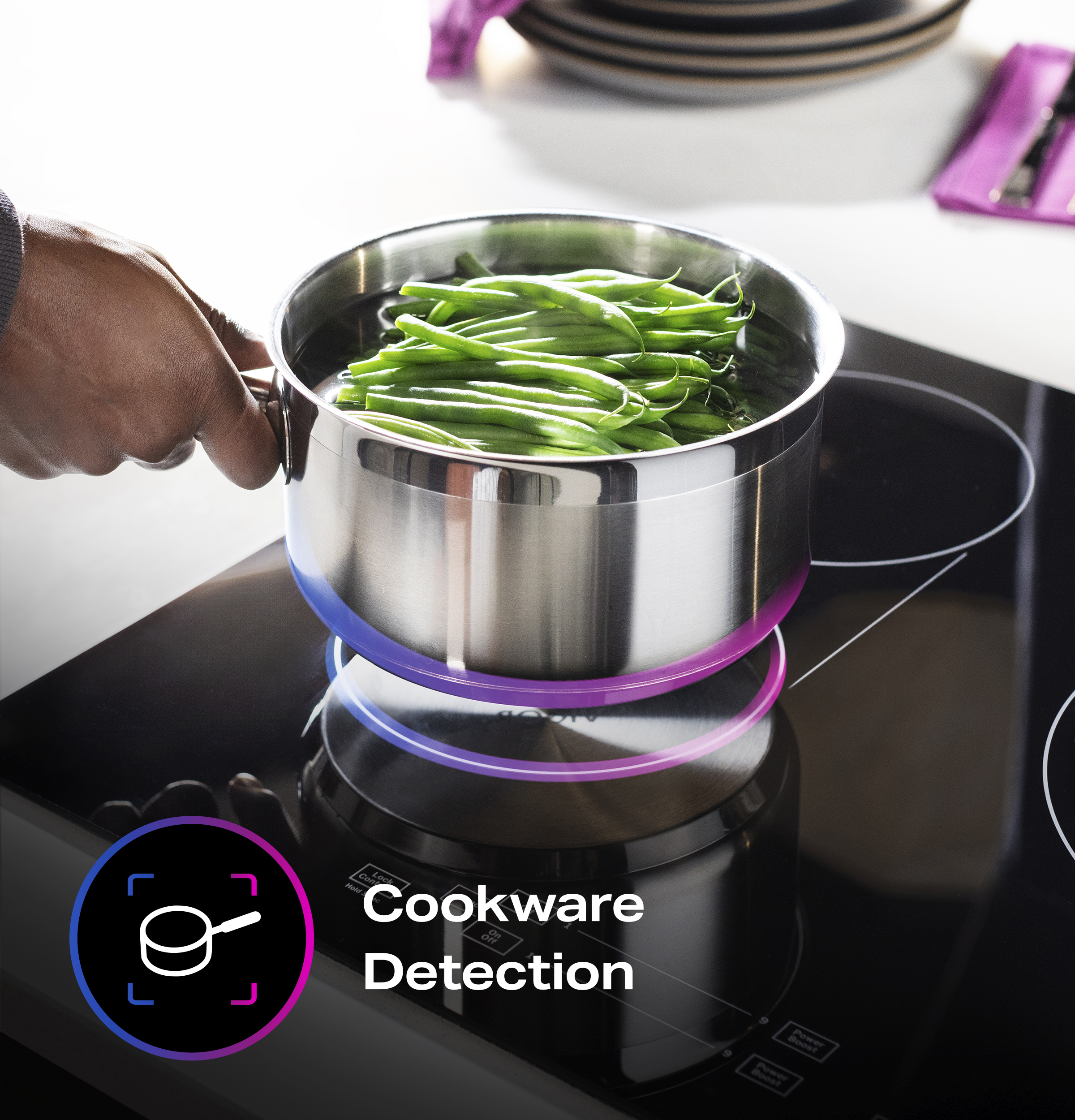 - When cookware is removed from the cooking surface, the active burner automatically shuts off, helping you stay worry-free.