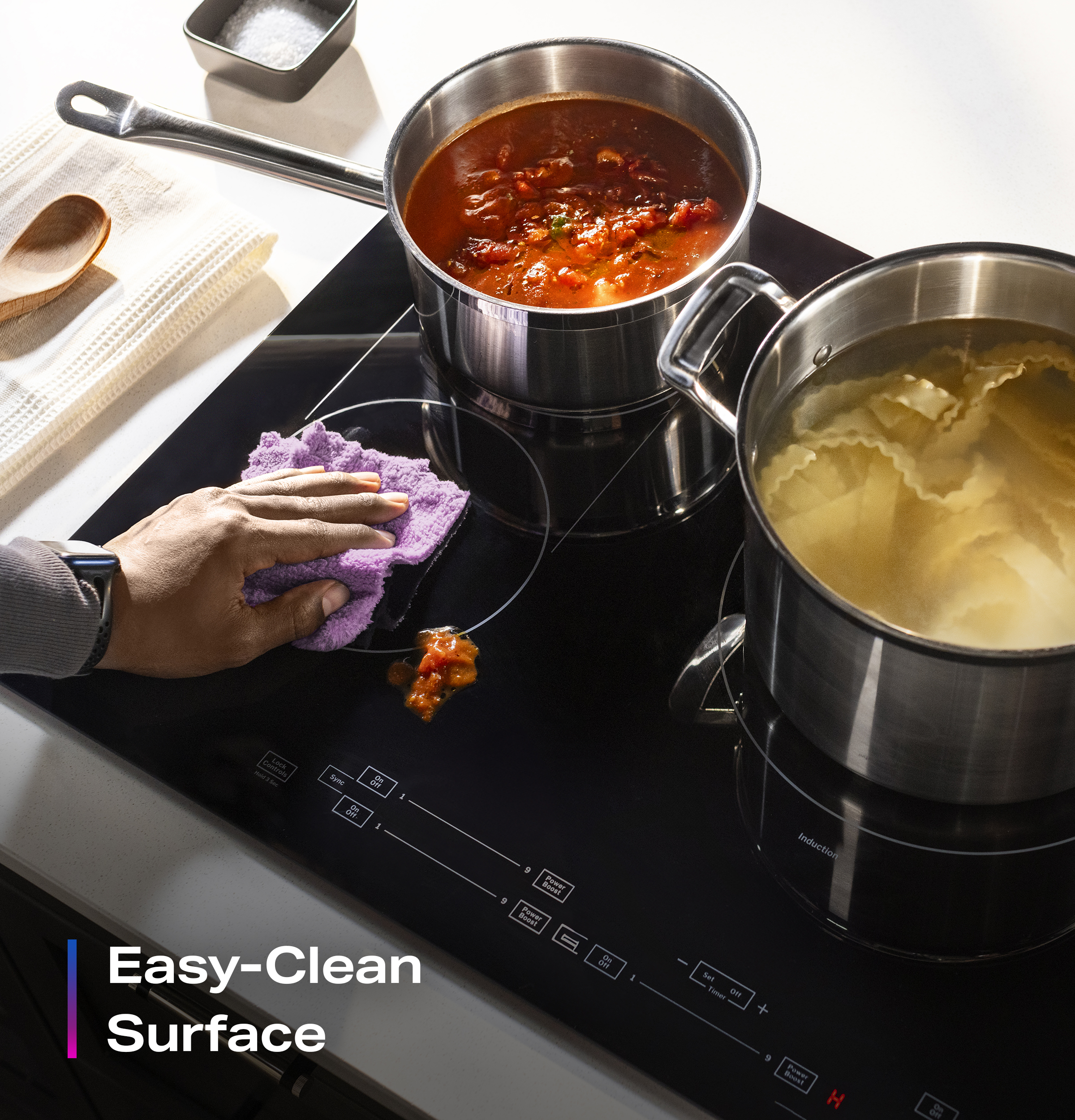 - A smooth glass surface makes cleaning
