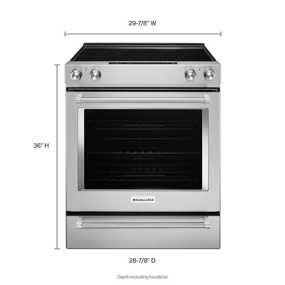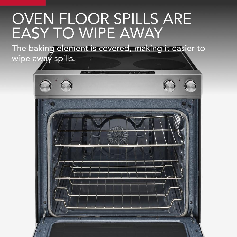- This electric slide-in range provides a large cooking capacity that easily handles multiple dishes at once.