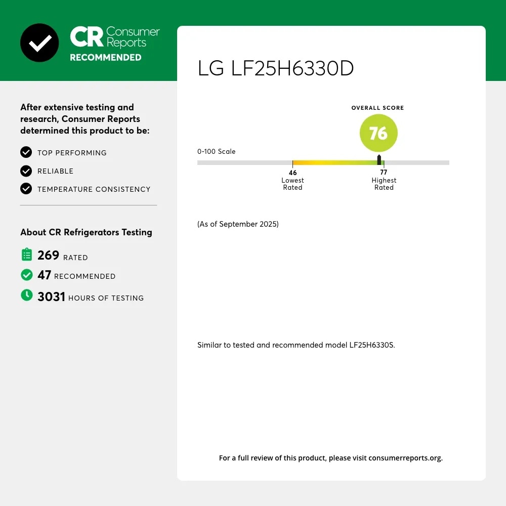 - 25 cu.ft. large capacity lets you stock up on more of your favorites