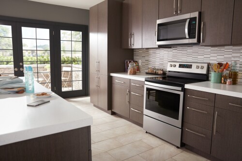 - Dark Interior helps create a sleek, modern look while helping to reduce the visibility of food splatters.